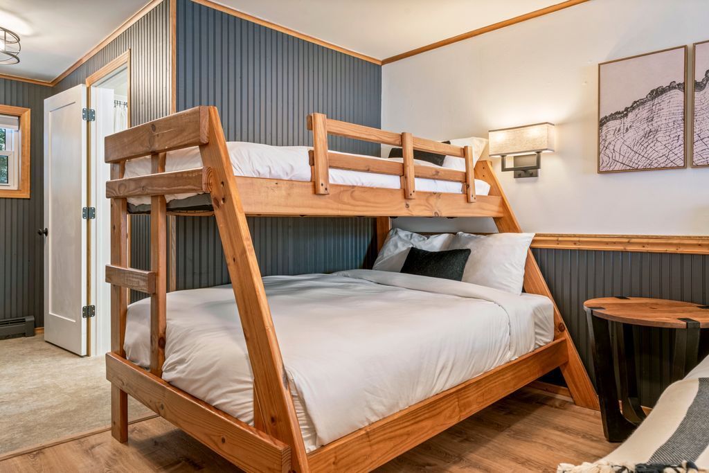 Our Deluxe room Handicapped standard room is the same room layout as our Deluxe Queen with Bunks with the difference of it being handicapped accessible. The bed is a full bed and the bunks has a twin on top and bottom.